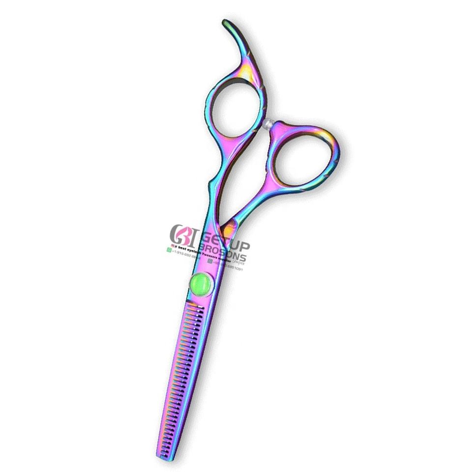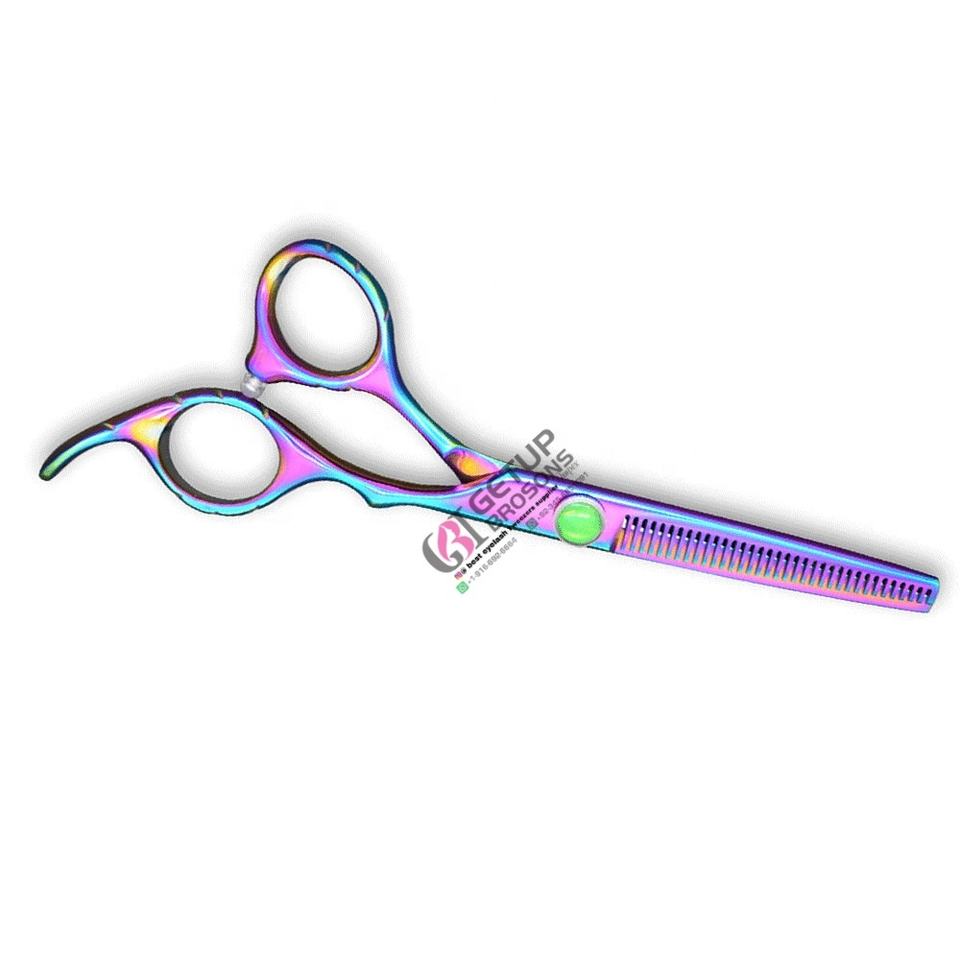 กรรไกรตัดผมทรงพลังสีรุ้งแบบขายส่ง ด้ามเซรามิก สแตนเลส สำหรับคนถนัดขวา GETUP BROSONS IMPEX