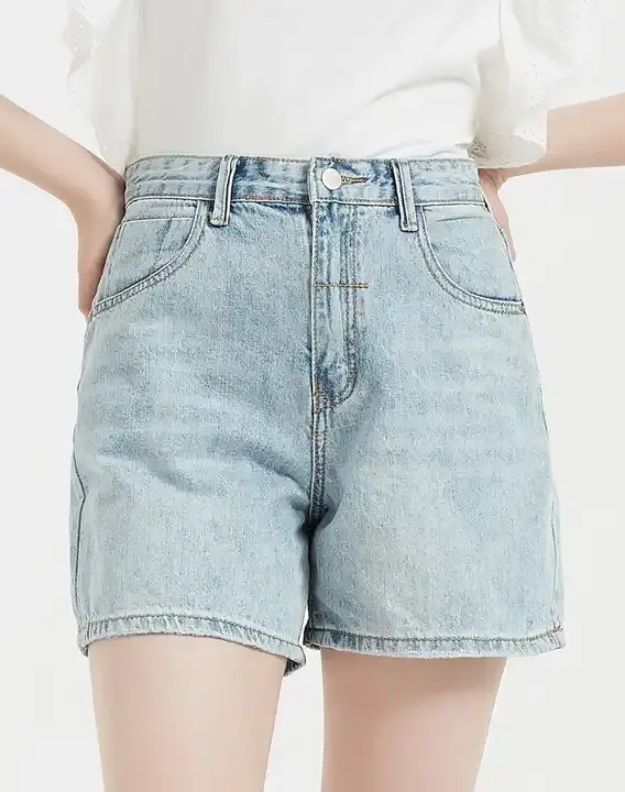 กางเกงขาสั้นผ้ายีนส์เอวสูงสำหรับผู้หญิงมาใหม่พร้อมชายเสื้อเปิดขอบกางเกงทรงตรงสุดฮ็อตผลิตในฤดูร้อน