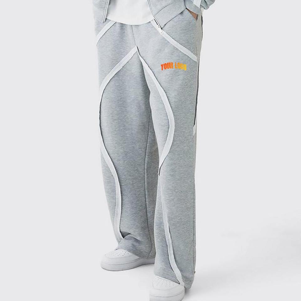 กางเกงวอร์มขายาวของผู้ชายทรงตรงโอเวอร์ไซส์พิมพ์ลายโลโก้ออกแบบได้ตามต้องการสำหรับฤดูร้อน