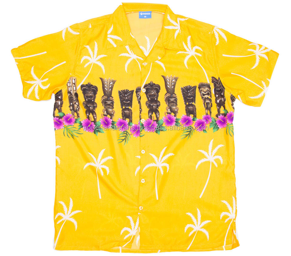 เสื้อฮาวายผ้าโพลีเอสเตอร์สำหรับผู้ชายแขนสั้นสุดเท่เสื้อฮาวายผ้าโพลีเอสเตอร์แบบปรับแต่งได้สำหรับฤดูร้อน