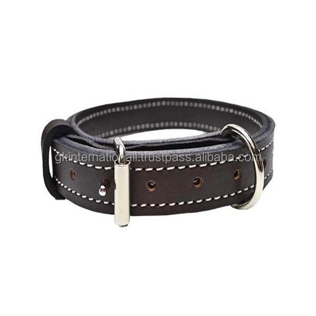 ปลอกคอสุนัขหนังพรีเมียมสีดำ ตกแต่งด้วยการเย็บอย่างประณีตและบุอย่างนุ่มสบาย พร้อมฮาร์ดแวร์นิกเกิลปรับได้ จำหน่ายราคาส่ง