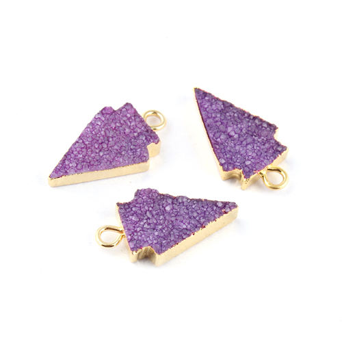 Druzy ตัวเชื่อมต่อแบบห้อยสำหรับทำเครื่องประดับทองชุบ24K,เครื่องรางแบบ Diy เชื่อมต่อด้วยไฟฟ้าและน้ำตาลสีม่วง