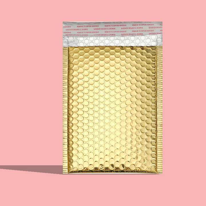 ขายส่งฟิล์มเคลือบอลูมิเนียมสีทองหนา 15 ซม.X 20 ซม.+4 ถุงฟองอากาศถุงด่วนถุงบรรจุภัณฑ์เครื่องสำอาง