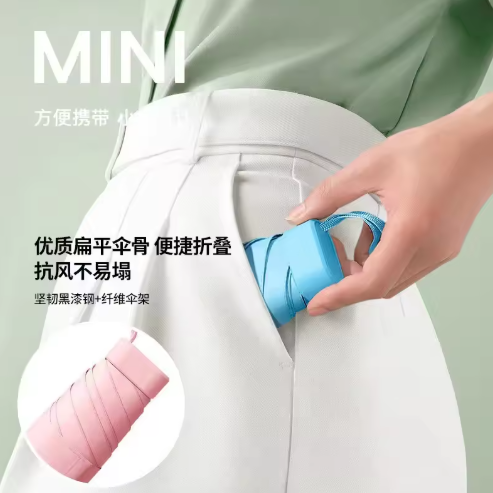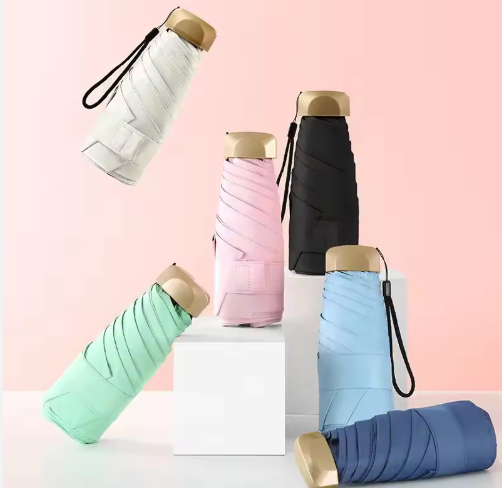 ร่มแคปซูลพกพาขายส่ง - แบบพับ 5 ตอน เปิดปิดด้วยมือ กันน้ำ ดีไซน์เรียบง่าย พกพาสะดวก ของขวัญสำหรับธุรกิจ