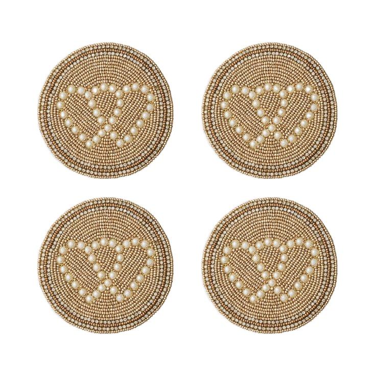 ชุดที่รองแก้วลูกปัดไฟฟ้าทรงโบว์เดอร์ปักด้วยมือดีไซน์ทันสมัย