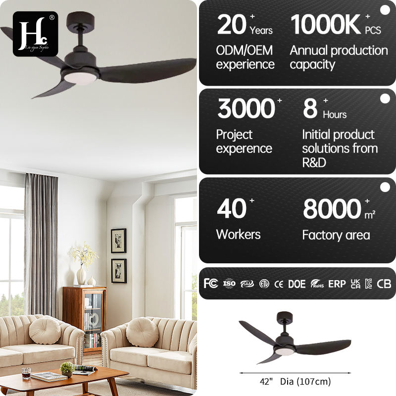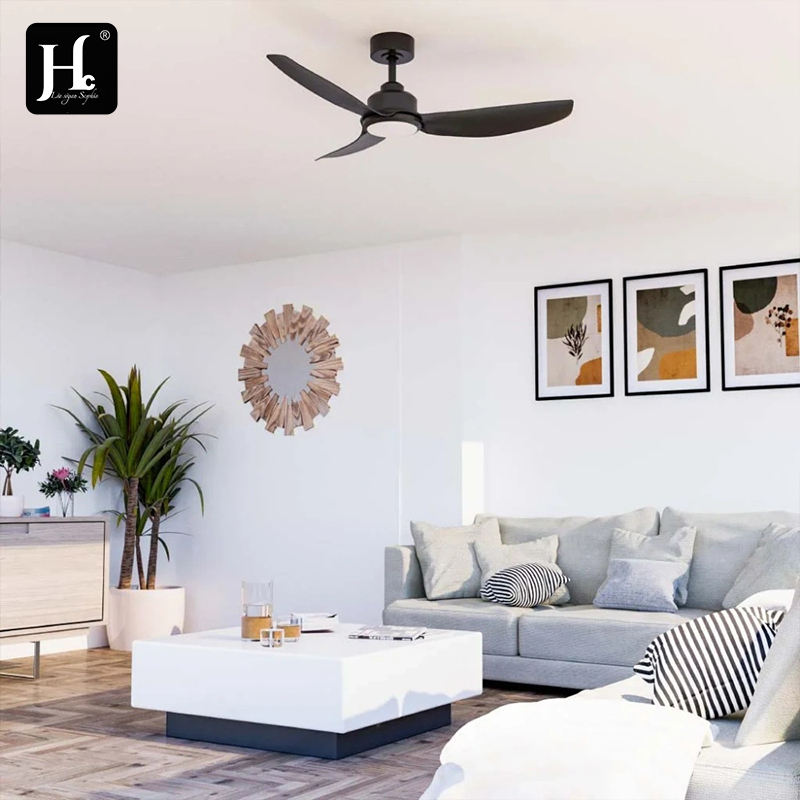 พัดลมเพดานสีดำสำหรับห้องนอน แบบมีไฟและรีโมทคอนโทรล BLDC ปรับความเร็วได้ 6 ระดับ พร้อมไฟ LED หรี่แสงได้ ขายส่ง