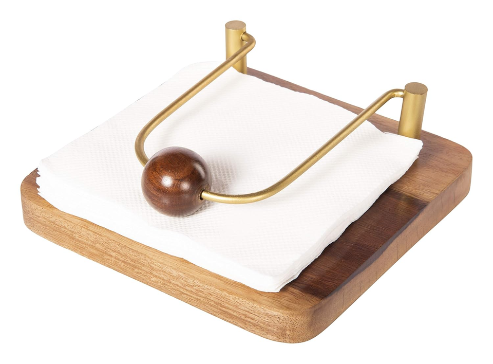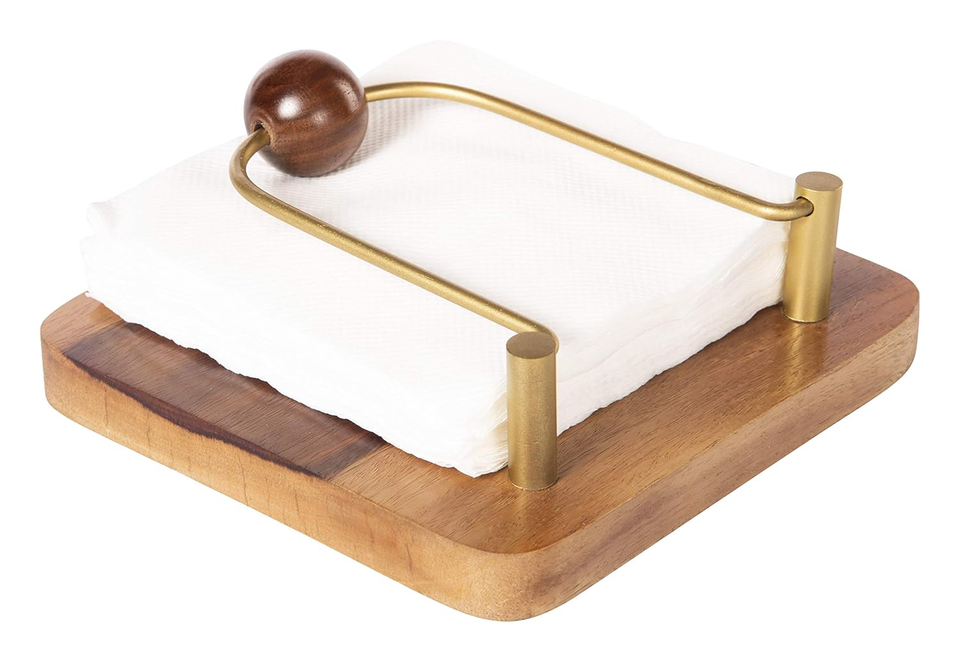 ที่ใส่ผ้าเช็ดปากทำจากไม้แบบมีแขนโลหะสำหรับโต๊ะอาหารแบบเรียบง่ายทันสมัยสำหรับใช้ในห้องครัวและร้านอาหาร