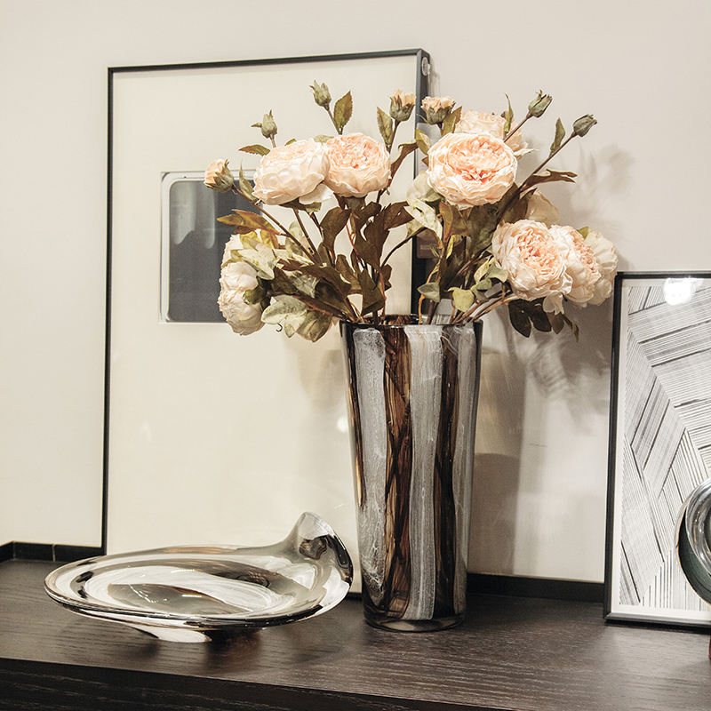 แจกันแก้วสีลายม้าลายทันสมัยสำหรับตกแต่งบ้านสุดหรู ขายส่ง