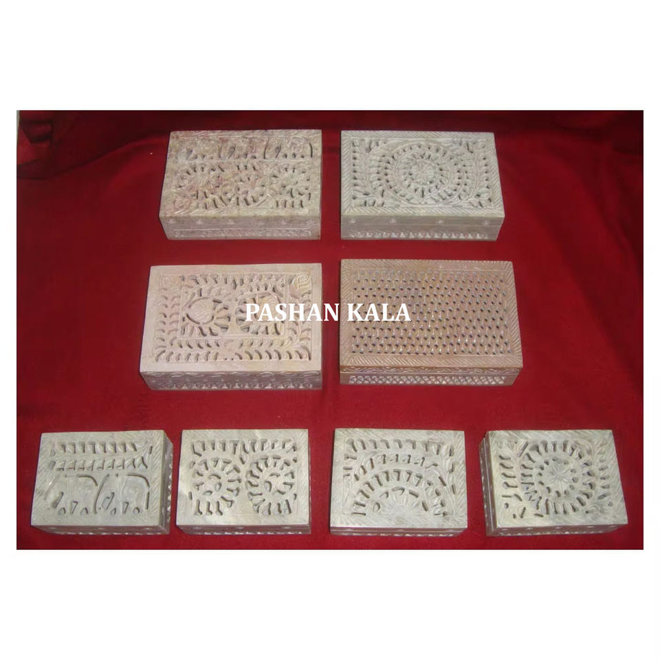 กล่องเครื่องประดับแกะสลักหินสบู่ธรรมชาติของอินเดียสำหรับเป็นของขวัญทางธุรกิจและของตกแต่งบ้าน
