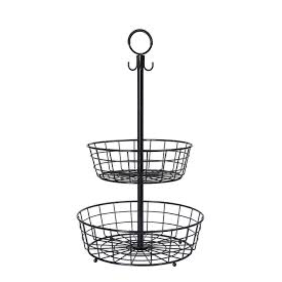 ตะกร้าผลไม้เหล็กดำ 3 ชั้น พร้อมขาตั้งโค้ง สำหรับโต๊ะอาหารในบ้าน อุปกรณ์ครัว ตะกร้าเก็บผลไม้