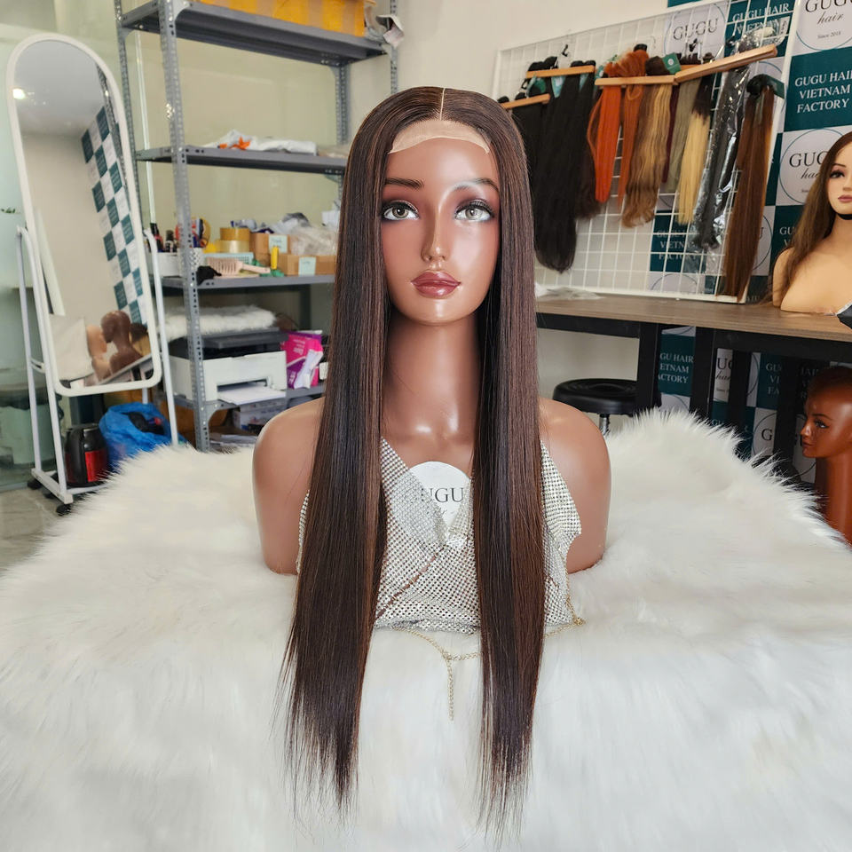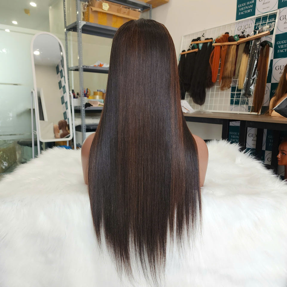 วิกผมแท้ยาว5*5แบบ100% ผมตรงกระดูกผมมนุษย์ทำจากเส้นผมเพื่อให้ผมมีความหนาแน่นสูง200% ปิดแบบสองชั้น