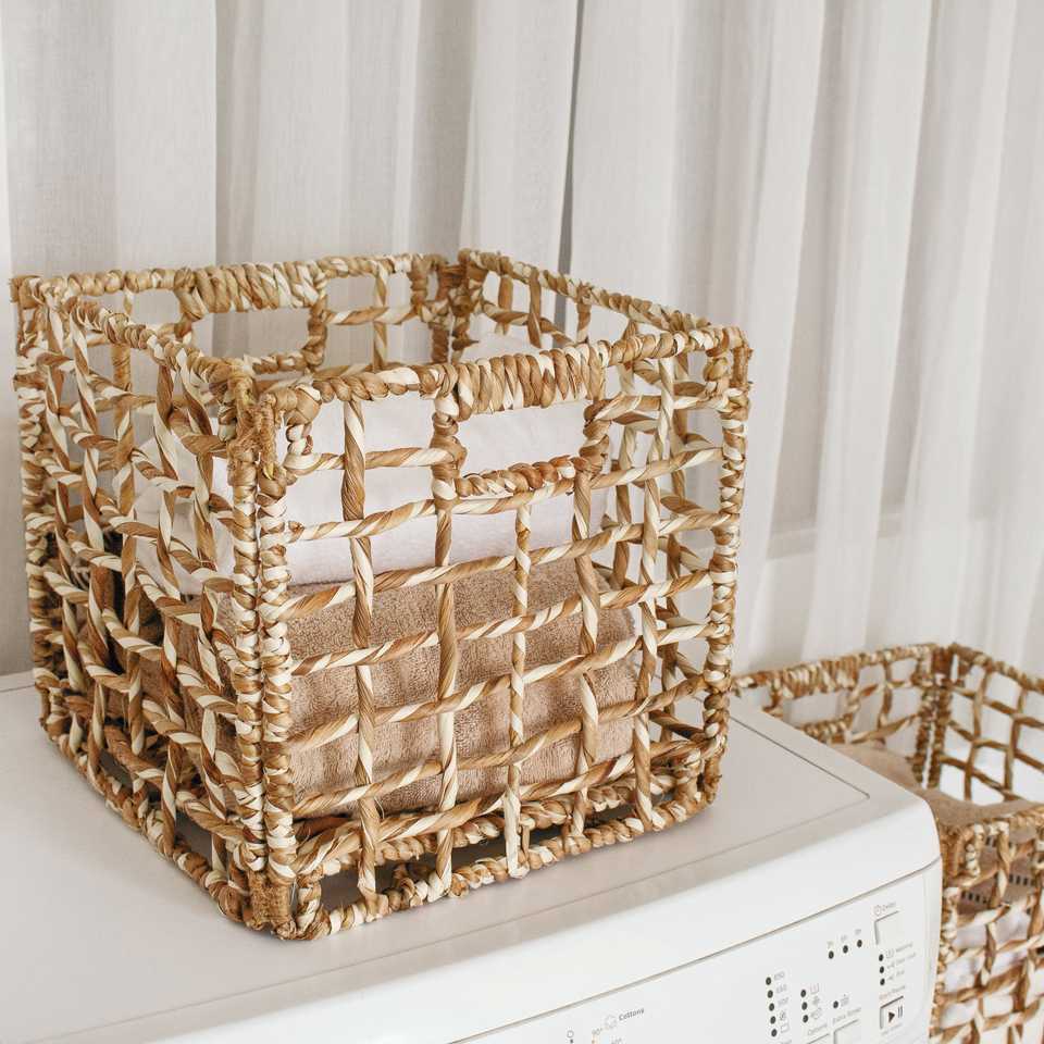 ตะกร้าเก็บของพับได้จากผักตบชวา ผลิตในเวียดนาม ตะกร้าสานธรรมชาติอเนกประสงค์สำหรับตกแต่ง