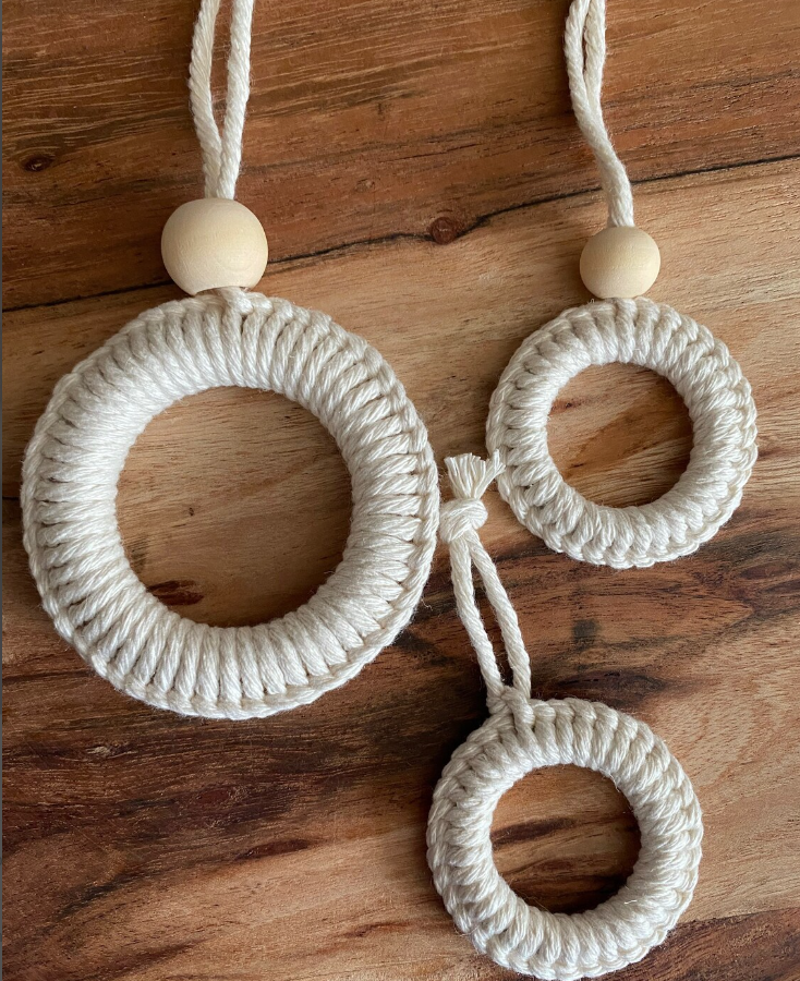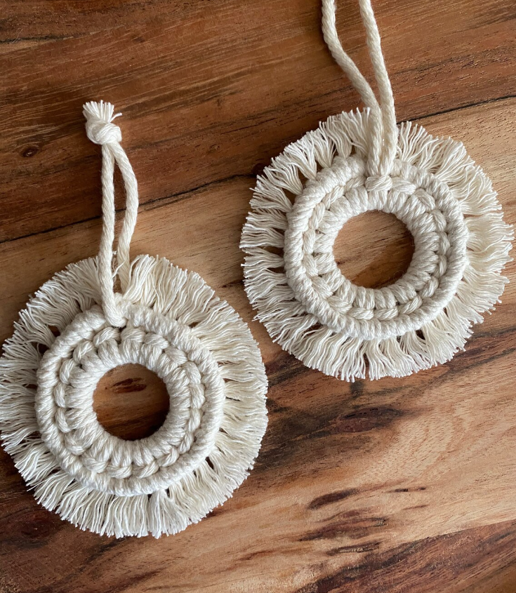 ชุดมาคราเม่ผ้าฝ้าย5ชิ้นพร้อมที่แขวนลูกปัดสำหรับตกแต่งต้นคริสต์มาสผลิตจากเวียดนาม