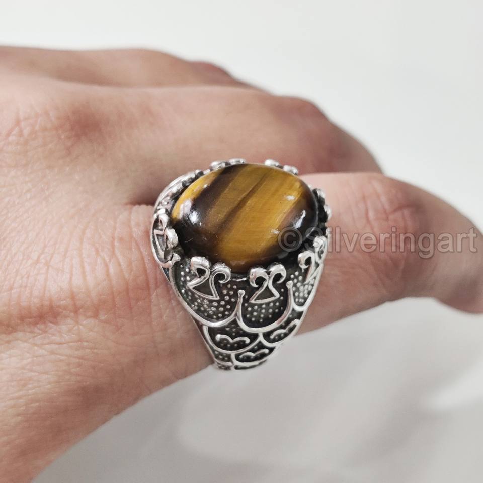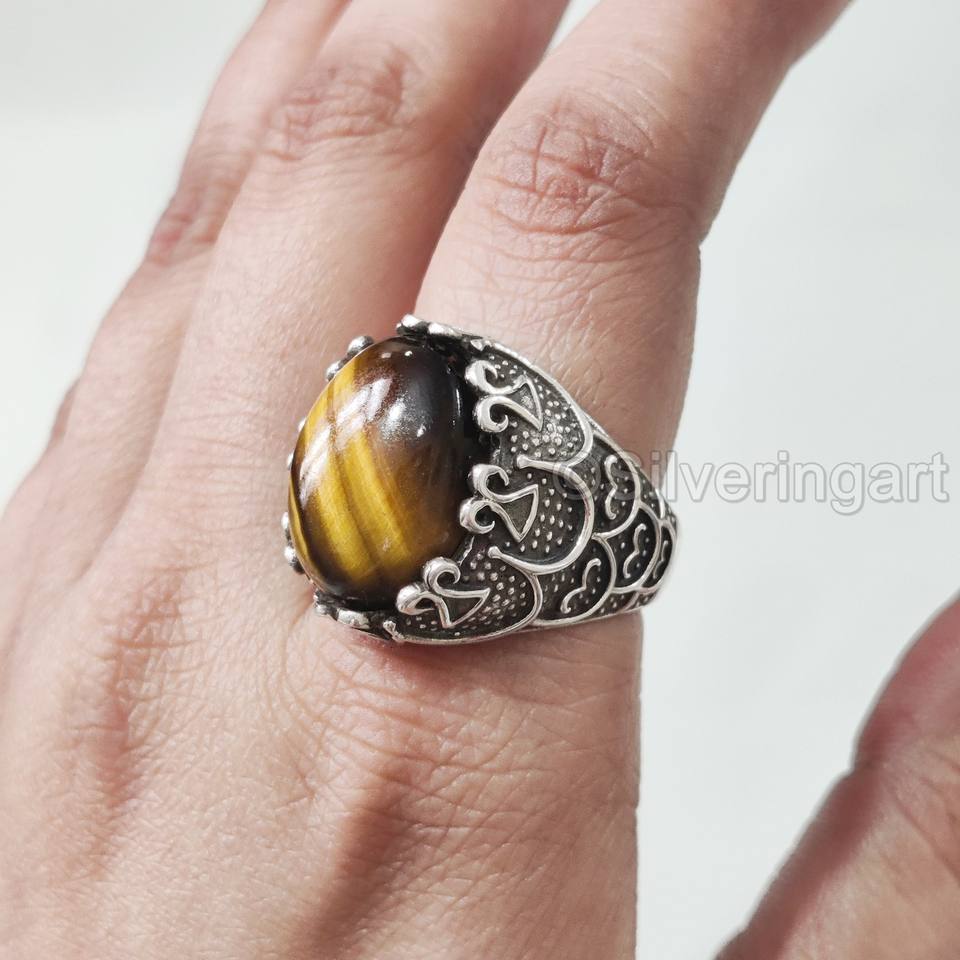 ขายส่งผู้ชายแหวนพลอยตาเสือธรรมชาติ June birthing ทุกขนาดเครื่องประดับคริสต์มาสหนัก925แหวนเงินสเตอร์ลิง