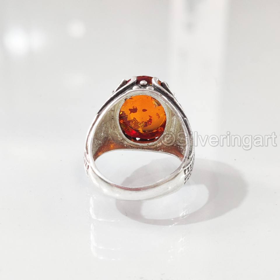แหวนผู้ชายขายส่งขายส่งแหวนพลอยอำพันธรรมชาติ Baltic ทุกขนาดเครื่องประดับคริสต์มาสอาหรับ925แหวนเงินสเตอร์ลิง