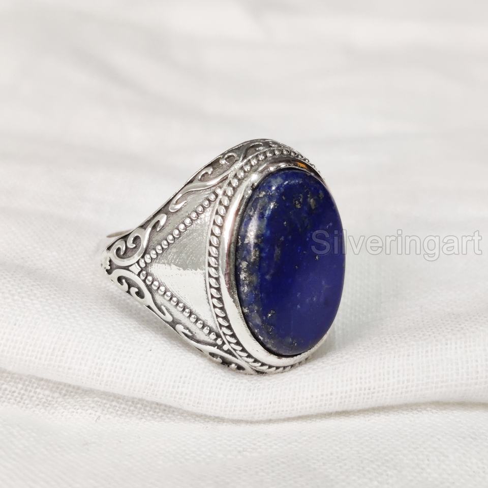 ผู้ค้าส่งบุรุษแหวนธรรมชาติLapis LazuliอัญมณีแหวนBirthstoneทุกขนาดออตโตมันเครื่องประดับคริสต์มาส925แหวนเงิน