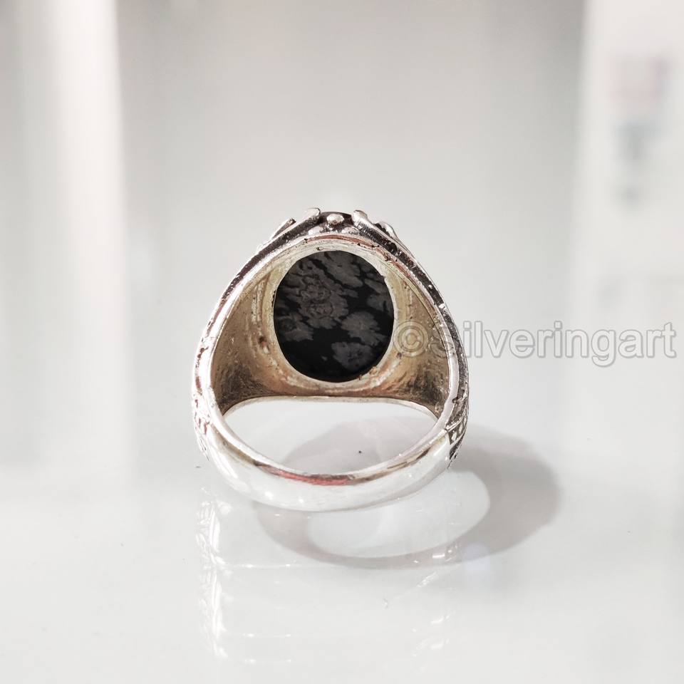 แหวนผู้ชายขายส่งขายส่งแหวนหินอัญมณีออบซิเดียนจากเกล็ดหิมะธรรมชาติแหวนวันเกิดทุกขนาดเครื่องประดับของพรรคอาหรับ925แหวนเงินสเตอร์ลิง