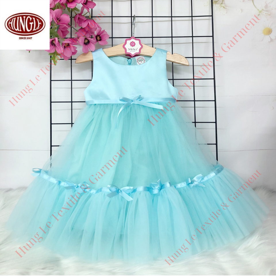 Wholesaler Mesh Decoration Small Bows With Sleeveless O-Neck Dress for Girls Knee-Length Layered Party Dress ODM Supply