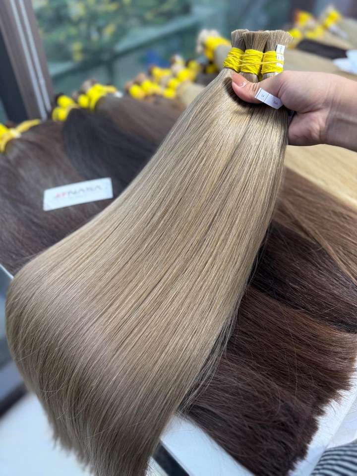 ราคาขายส่ง 100 กรัม ผมต่อแบบบราซิลเลียน ซุปเปอร์ดับเบิ้ลดรอน ลอนลึก ผมแท้ทุกสี 60 ซม.