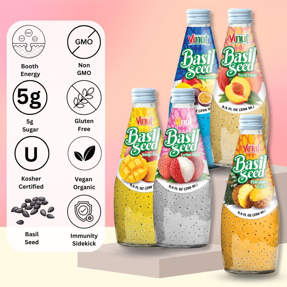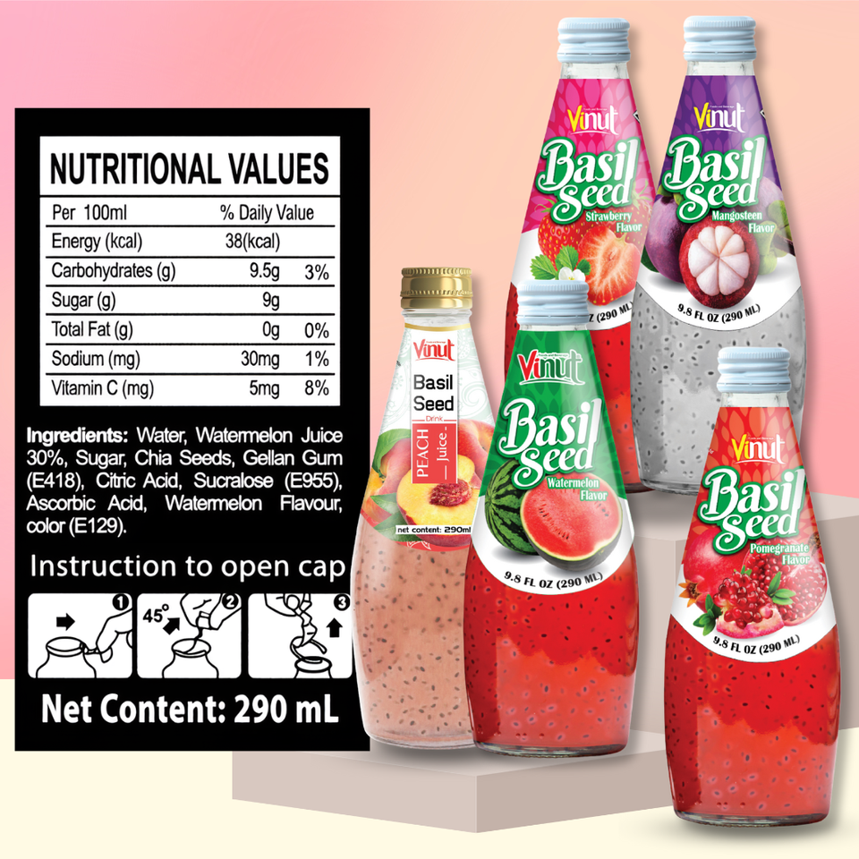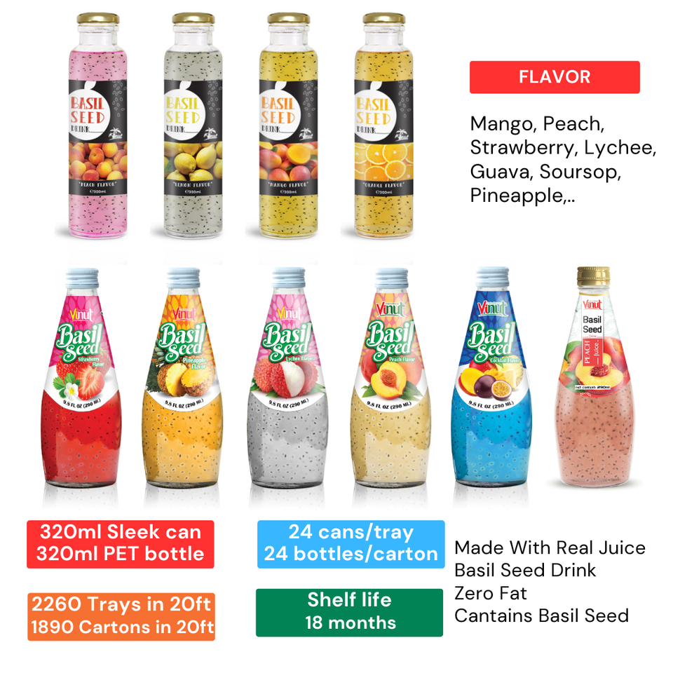 เครื่องดื่มน้ำพีชเบซิล280มล. (9.8ฟลอยซ์) โรงงานเวียดนาม | ปราศจากน้ำตาลฉลากส่วนตัว /odm