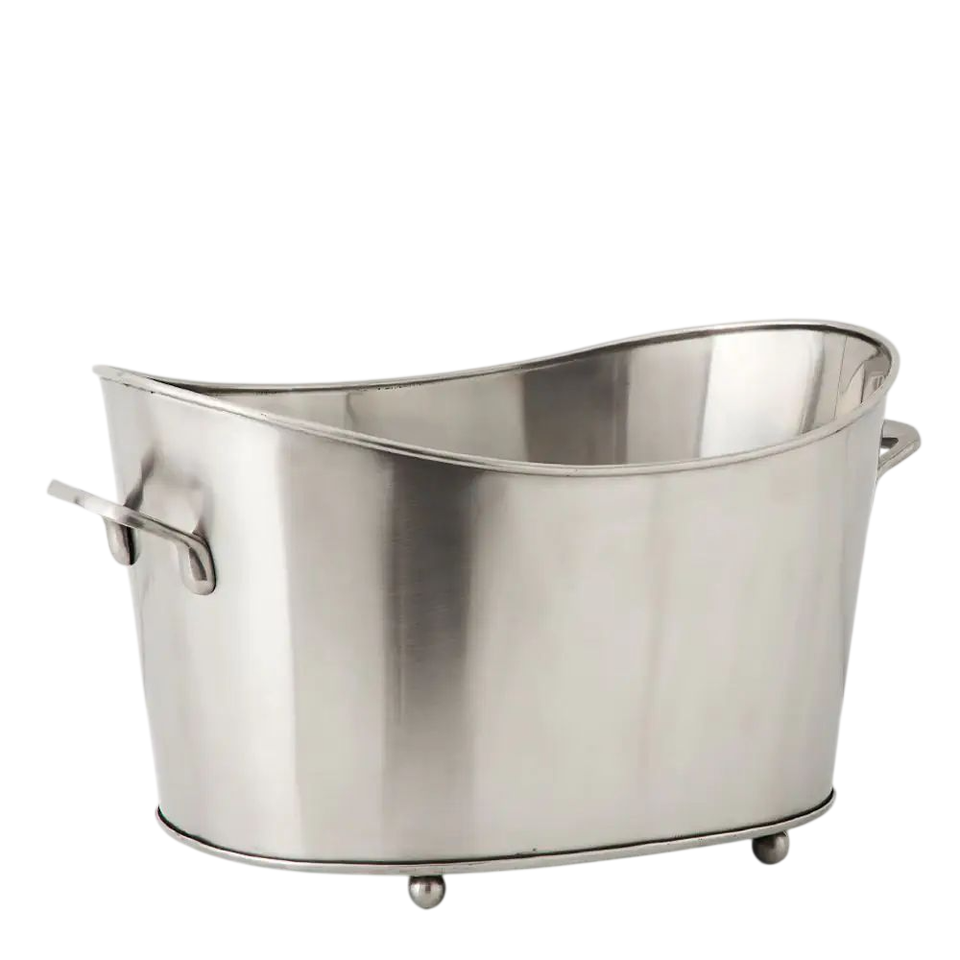ถังน้ำแข็งโลหะสีเงินสำหรับขายส่ง พร้อมหูหิ้ว รูปทรงวงรี ขนาดใหญ่ สำหรับเก็บขวดเบียร์และไวน์