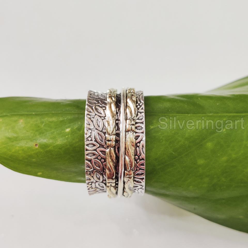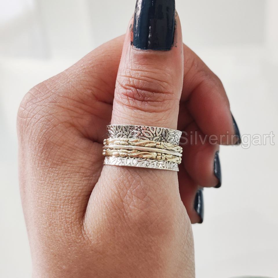 แหวนสปินเนอร์สำหรับผู้หญิงทำด้วยมือทำจากเงินสเตอร์ลิง925เครื่องประดับงานปาร์ตี้ความวิตกกังวลวงแหวนสปินเนอร์สำหรับผู้ชาย