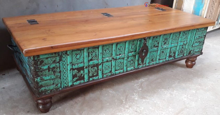 Antique trunk blanket box cum coffee tableลักษณะ