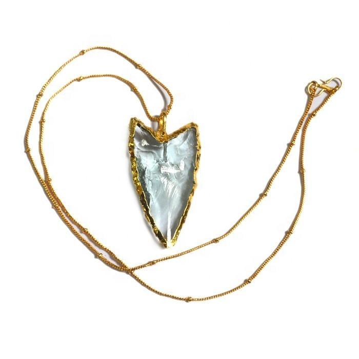 แก้วสีชมพู Arrowheads สร้อยคอ