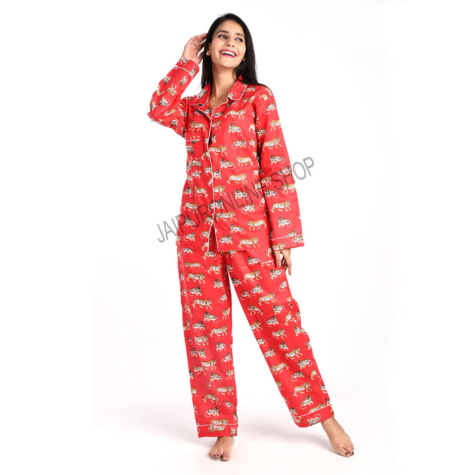 ชุดนอนผ้าฝ้ายลายดอกไม้แขนยาว,ชุดนอนขายาว