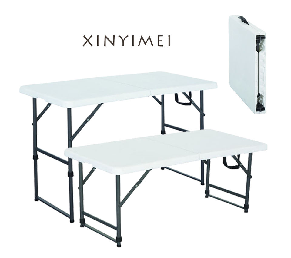 โต๊ะพลาสติกสี่เหลี่ยมพับได้สีขาวเฟอร์นิเจอร์กลางแจ้งแบบพกพาสำหรับจัดเลี้ยงบาร์บีคิวตั้งแคมป์โต๊ะปิกนิก