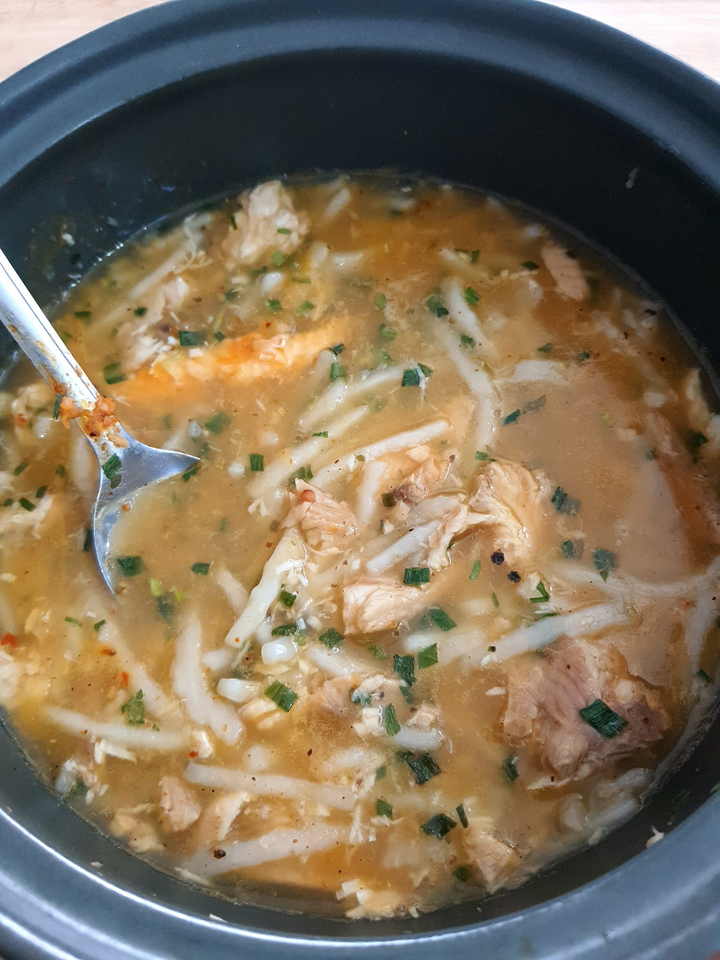 ซุปข้าว, ปลาช่อน, ซอส, ต้นหอมแห้งส่วนผสม