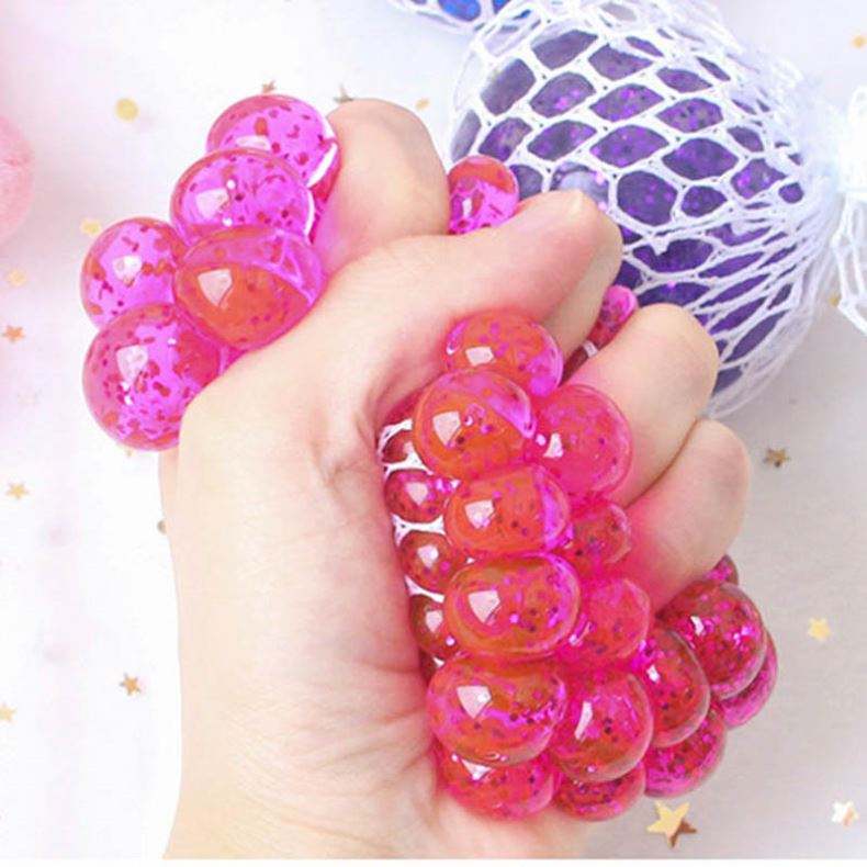 ของเล่นบีบคลายเครียดรูปองุ่นตาข่าย PU นุ่ม ขนาด 5.5-7 ซม. สำหรับทุกเพศ ขายส่ง