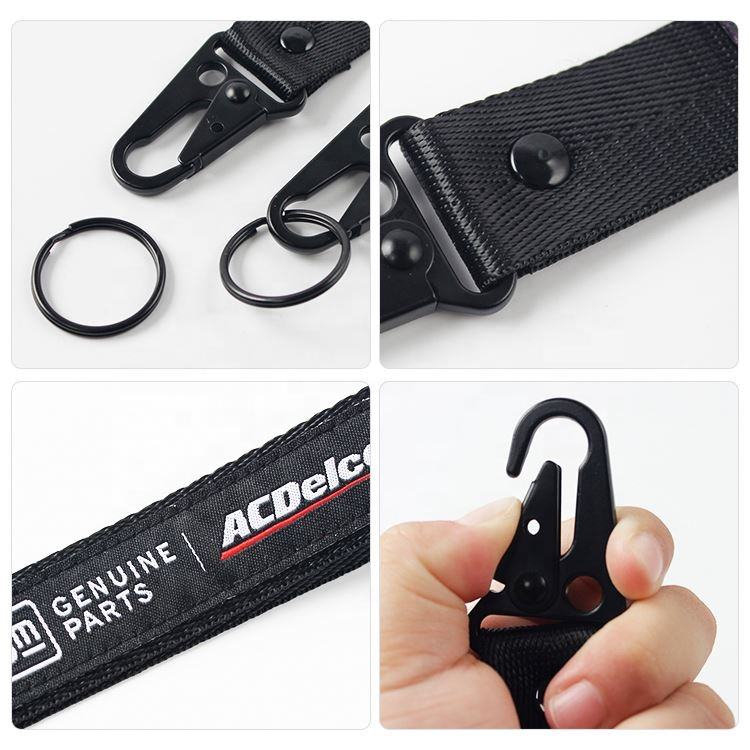 Wholesales Brand Name Logo Embroidered Custom Woven Motorcycle Lanyard Keychains