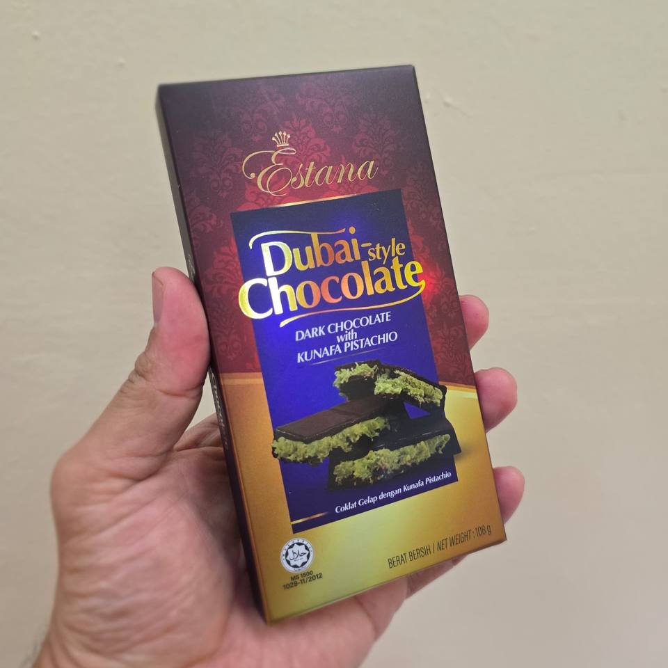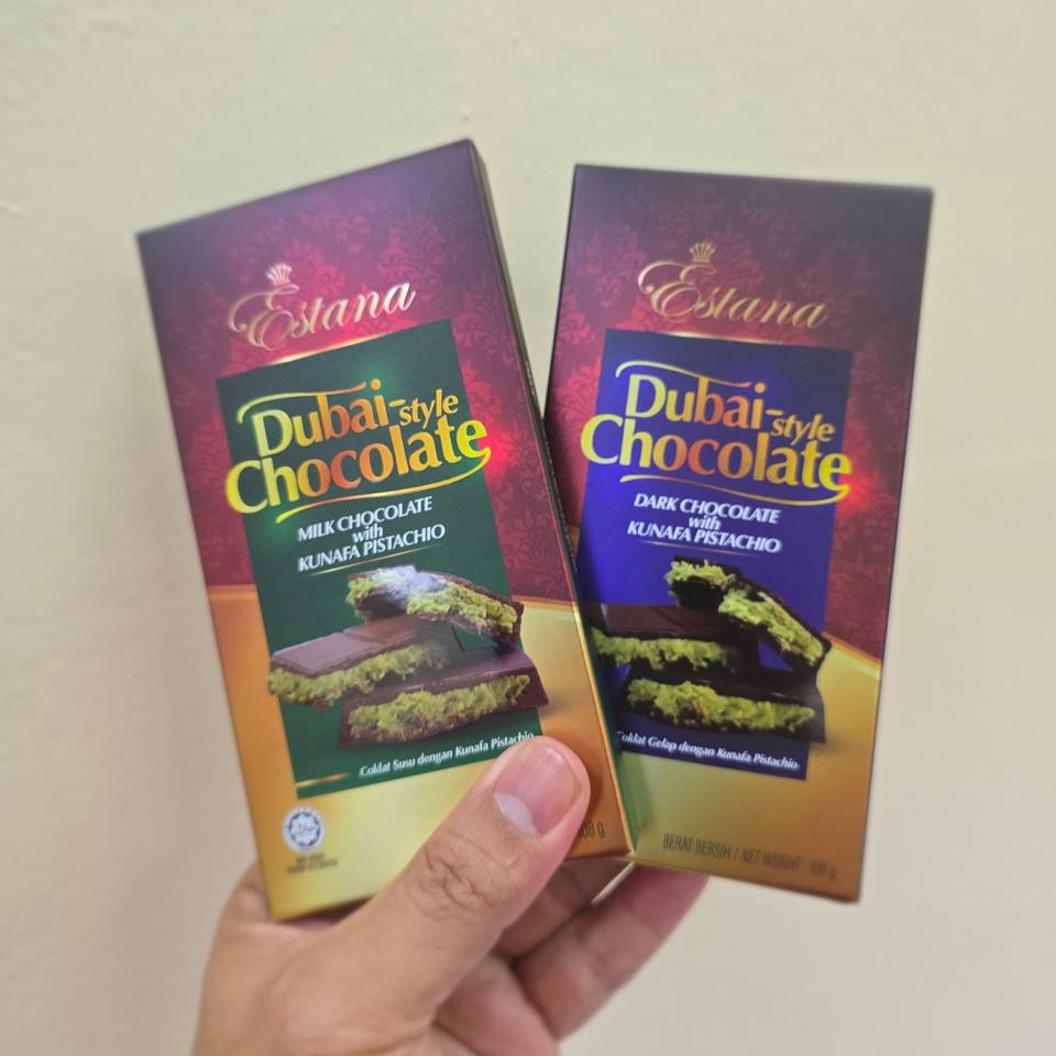 ขายส่งช็อกโกแลตแท่งสไตล์ดูไบ ESTANA ห่อแบบฟลอว์แรป ช็อกโกแลตหวานเคลือบช็อกโกแลตดำ คูนาฟา พิสตาชิโอ