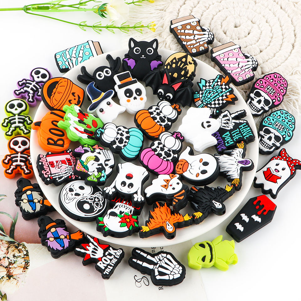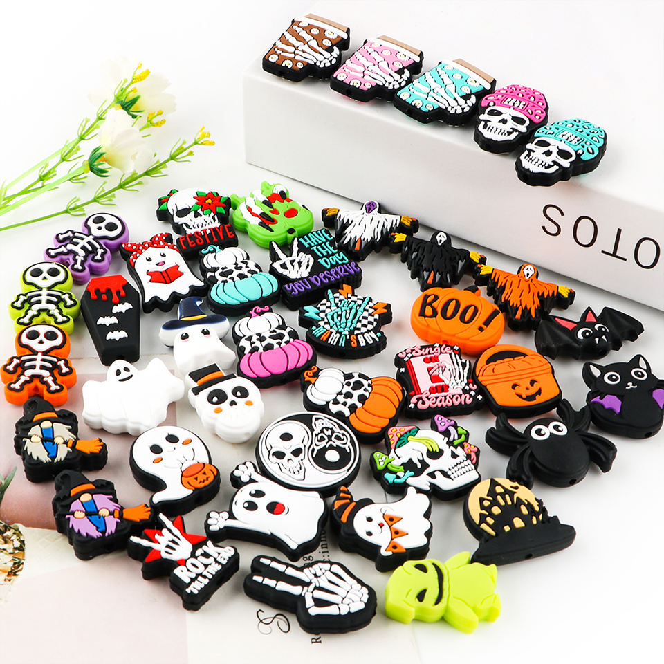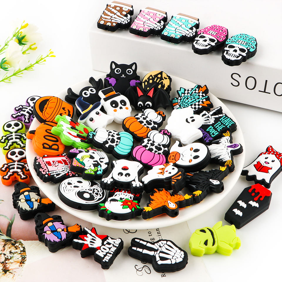 แฟชั่นขายส่งขายส่งกำหนดเองสีสันฮาโลวีนผีหัวกะโหลกฟักทองซิลิโคนฟันลูกปัดสำหรับพวงกุญแจเครื่องประดับทำด้วยตัวเอง