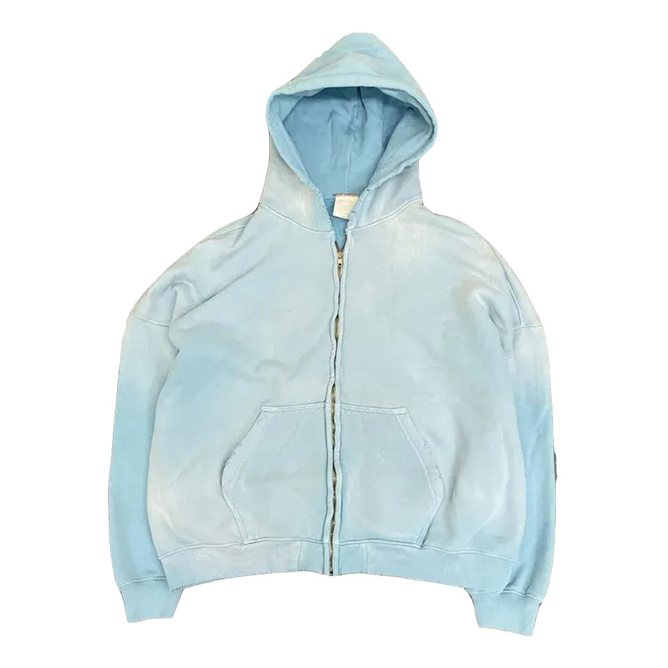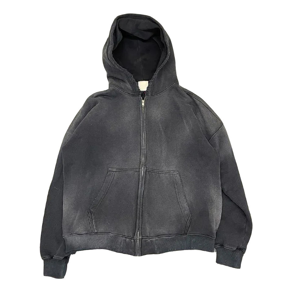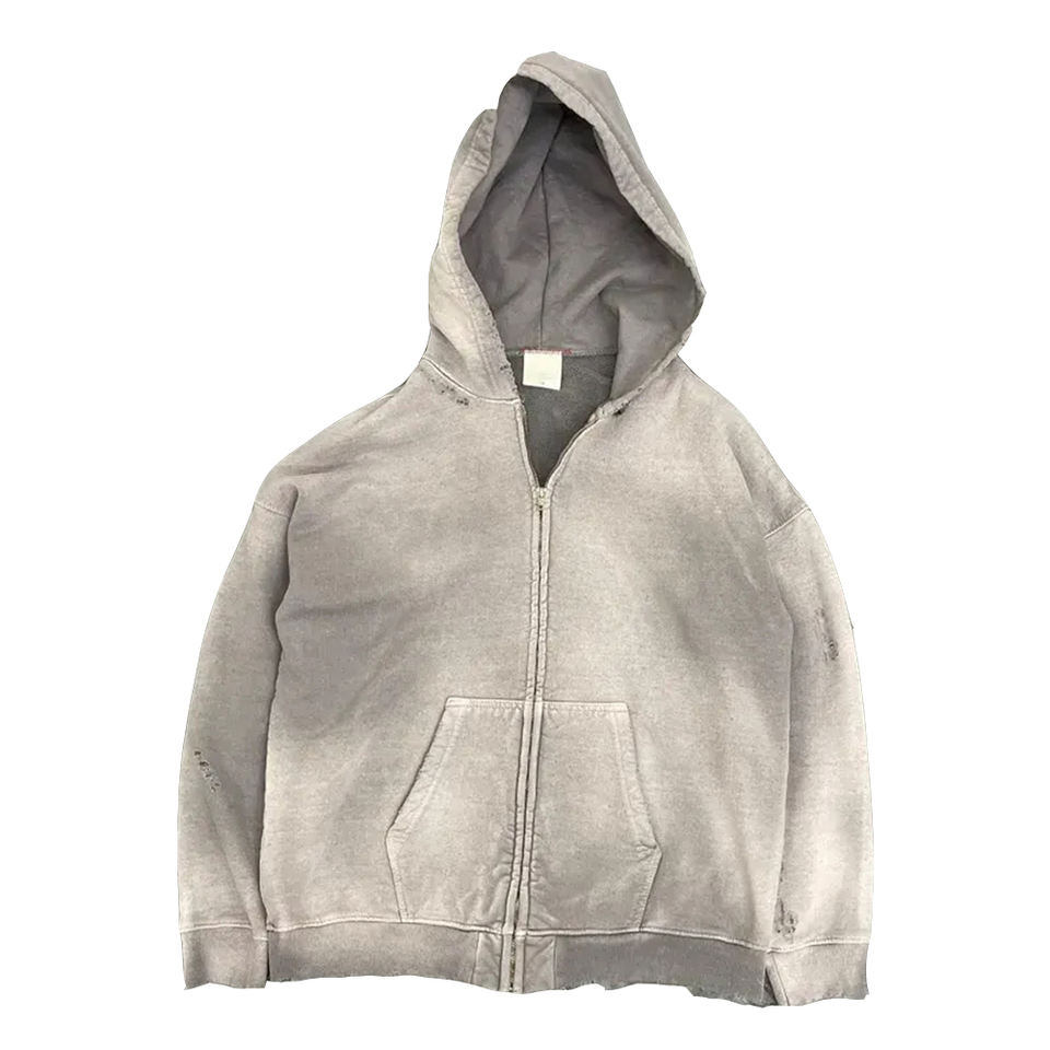 เสื้อมีฮู้ดผ้าฟลีซแบบมีซิปมีฮู้ดเสื้อฮู้ดผ้าฟลีซสองชั้นสไตล์วินเทจฟอกสีแสงแดดซีดจาง