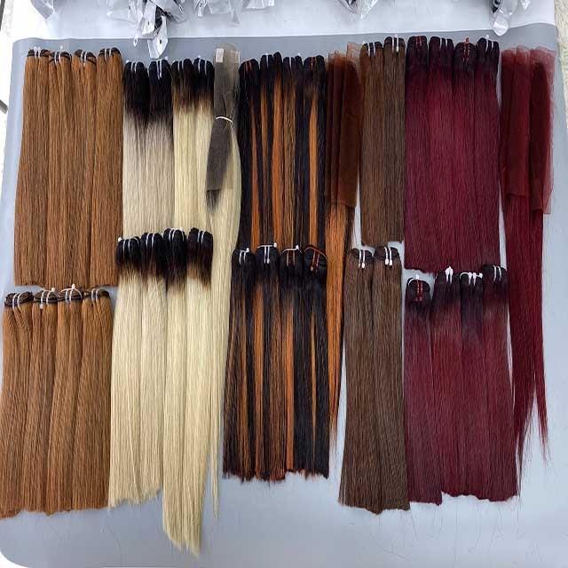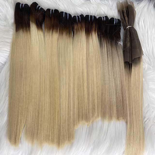 ผมต่อเวียดนามแท้สีดำบลอนด์ยาวตรงแบบเครื่องจักรเย็บสองชั้น ทนความร้อนสูง สำหรับผู้หญิง ยี่ห้อ VQ Hair ขายส่ง