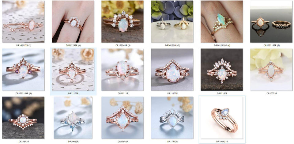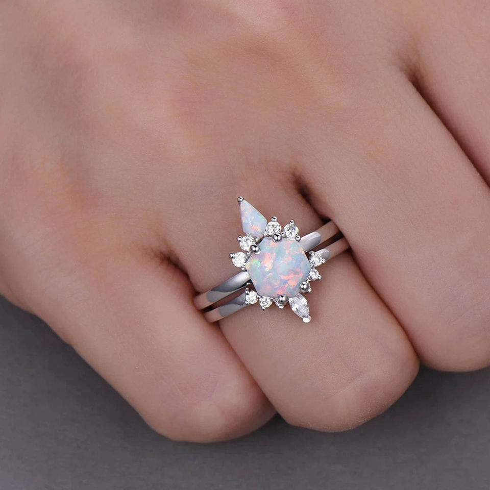 Opal Ring CZ Dainty Rings:Opal Ring Sets
