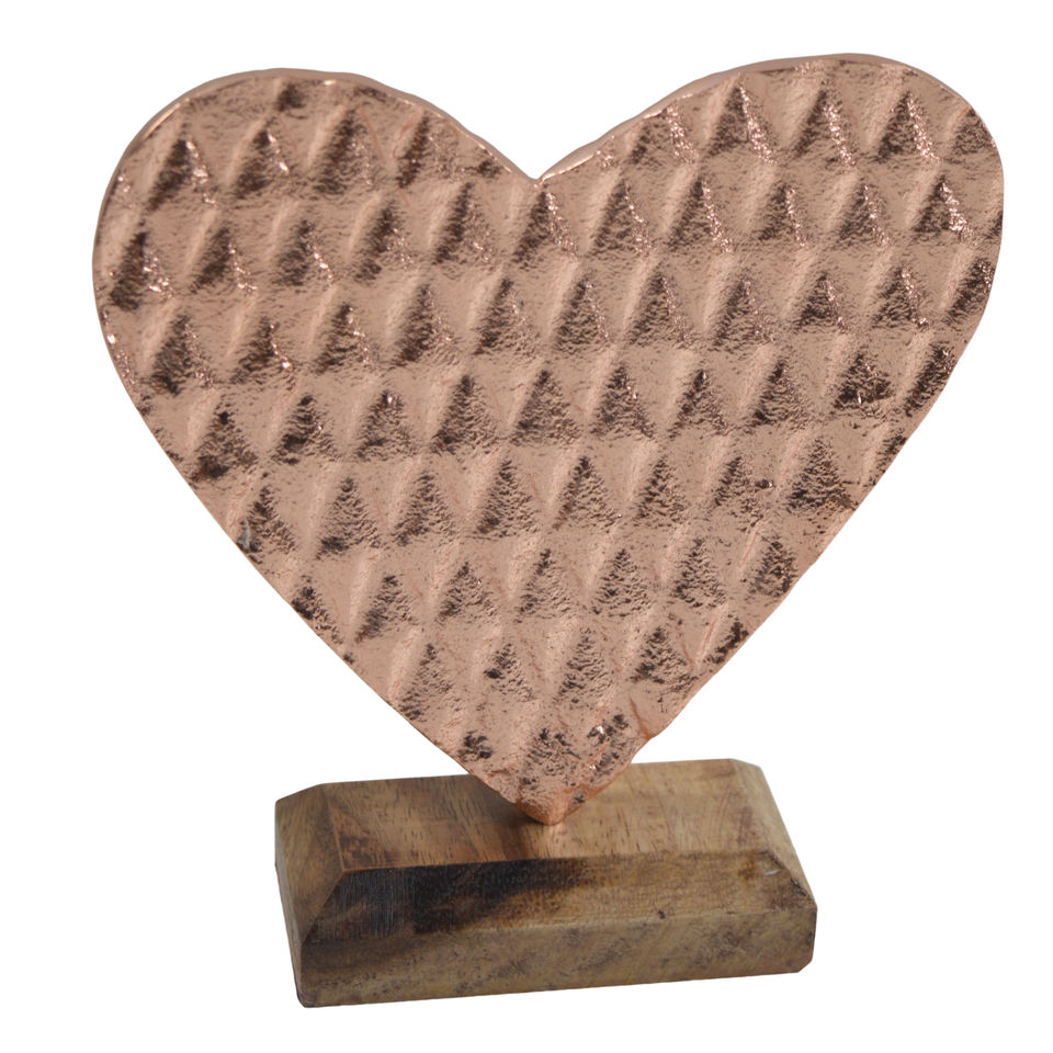ตกแต่งโต๊ะงานแต่งงานโลหะรูปหัวใจโลหะทองแดงโบราณพร้อมฐานไม้เครื่องประดับคริสต์มาสวัสดุสูง