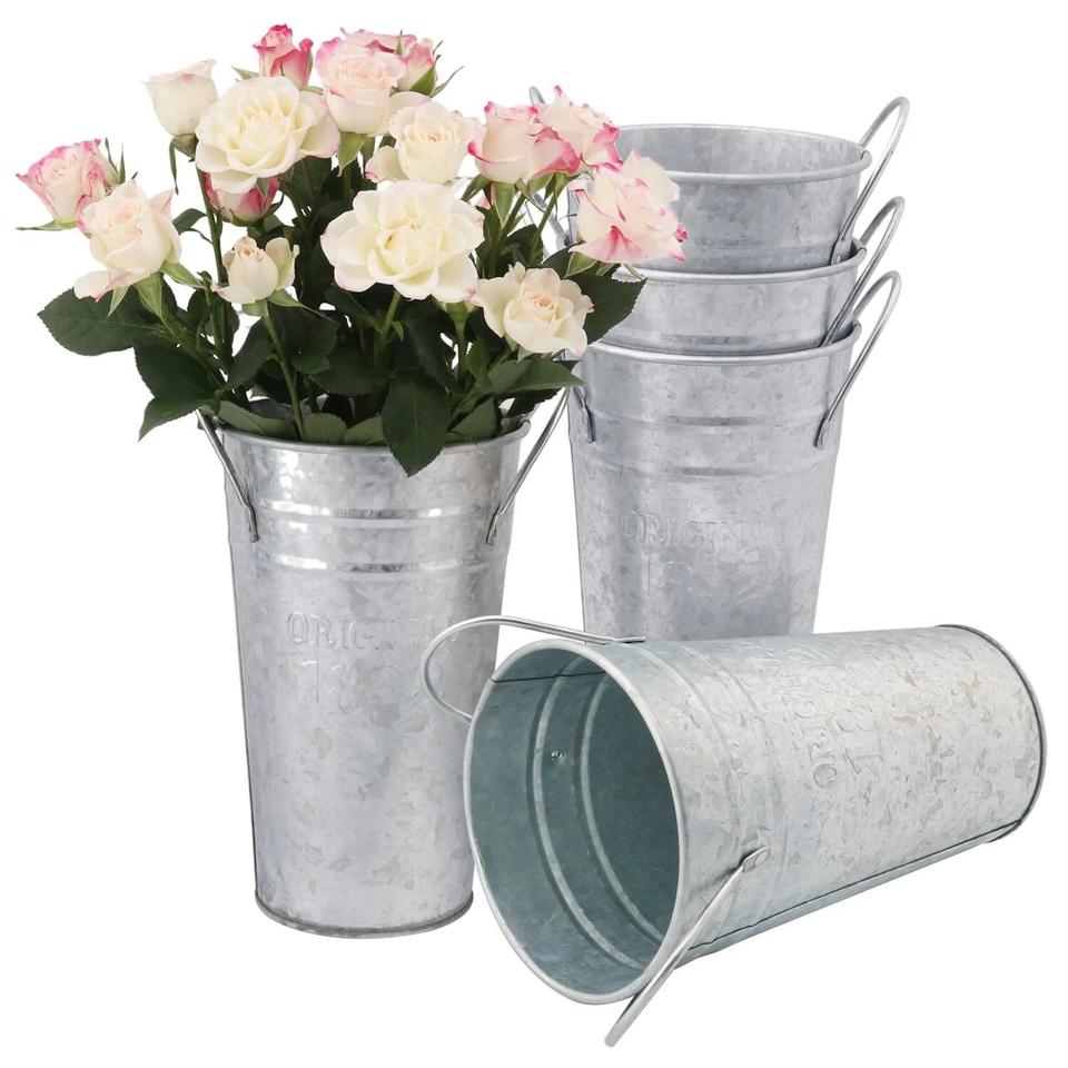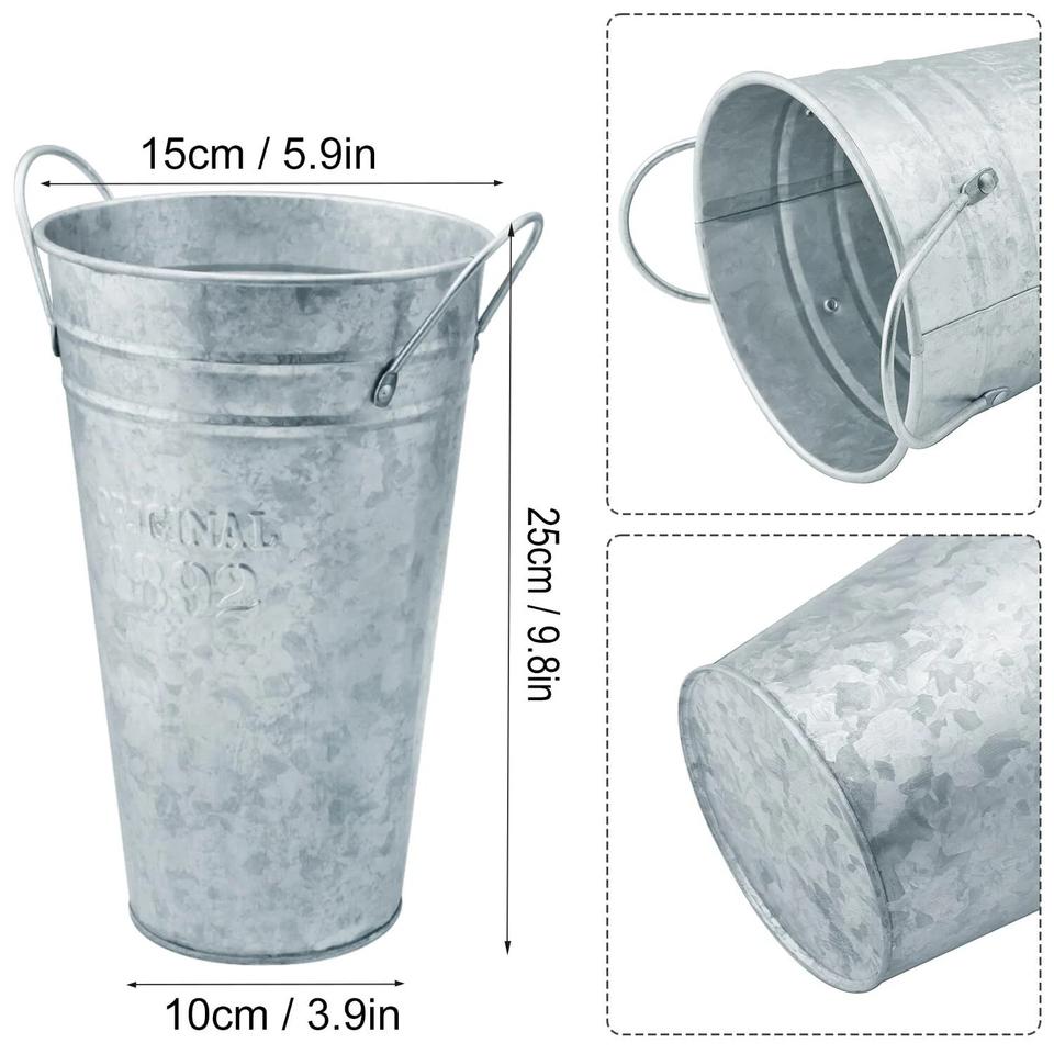 กระถางดอกไม้โลหะชุบสังกะสีขายส่ง พร้อมหูหิ้ว - แจกันสไตล์ฝรั่งเศสแบบเรียบง่าย กระถางปลูกต้นไม้ ของตกแต่งบ้านสไตล์ฟาร์มเฮาส์ กระถางตกแต่งกลางโต๊ะ