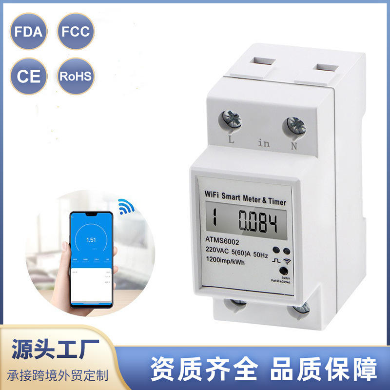 มิเตอร์วัดพลังงานอัจฉริยะ WiFi รุ่น ATMS6002 220VAC 5(60)A เฟสเดียว พร้อมตัวตั้งเวลาและรีโมทคอนโทรล