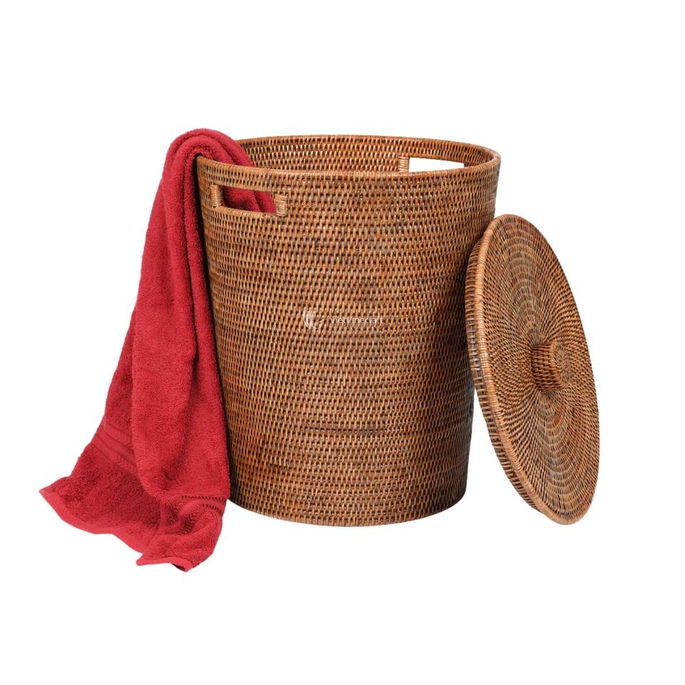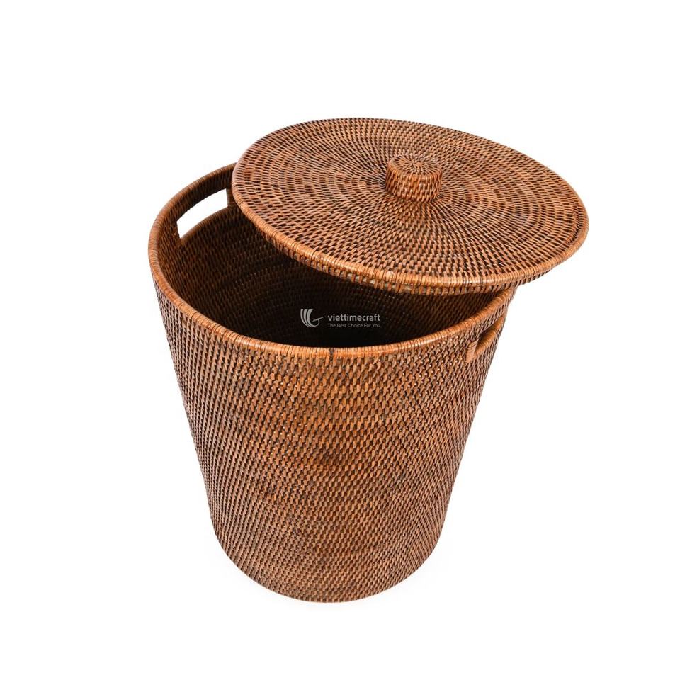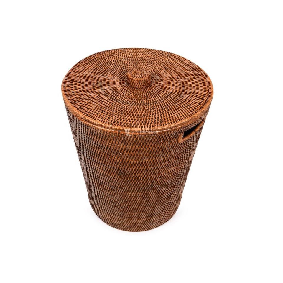ตะกร้าหวายสำหรับซักผ้าพร้อมฝาตะกร้าหวายสำหรับใส่ของในห้องน้ำและที่เก็บของสำหรับตกแต่งบ้าน