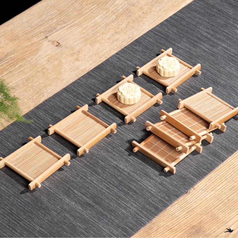 แผ่นรองแก้วหวายรูปทรงกากบาท ป้องกันความร้อน ลายดอกไม้ธรรมชาติ อุปกรณ์เสริมพิธีชงชา สำหรับใช้ในบ้าน งานแต่งงาน