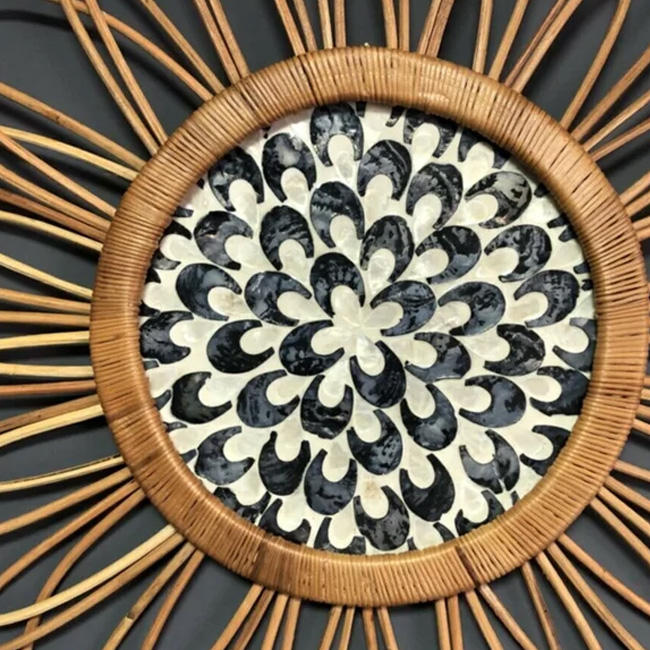 ของตกแต่งผนังโมเสกหวายหวาย,ดอกไม้ทอมือแบบแขวนผนังพร้อมมุก