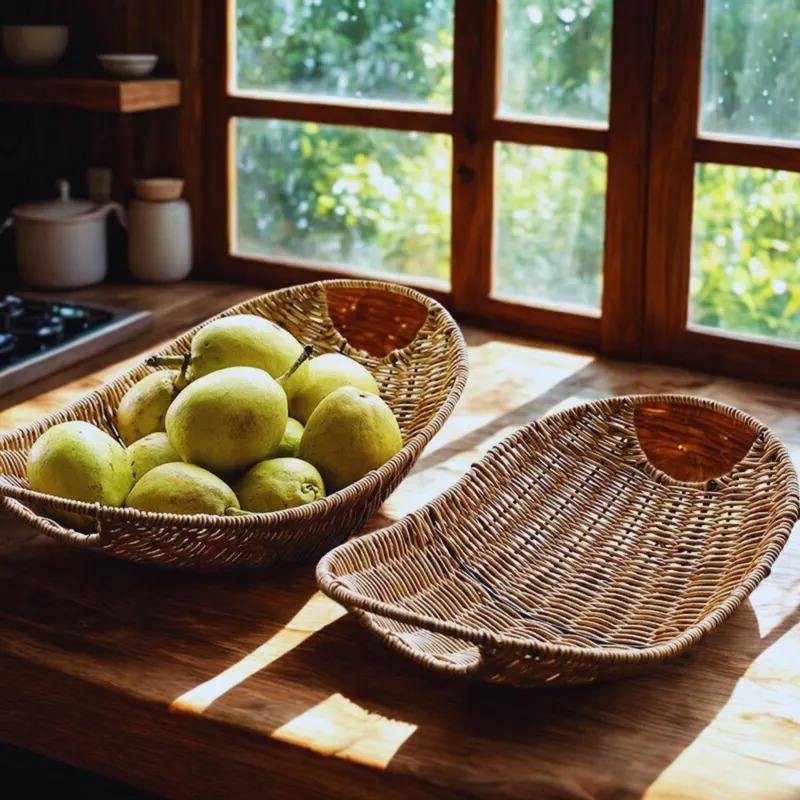 ถาดหวายหวายจัดระเบียบสำหรับการรับประทานอาหารจำเป็นสปาที่จัดแสดงและเป็นมิตรกับสิ่งแวดล้อมของตกแต่งบ้าน
