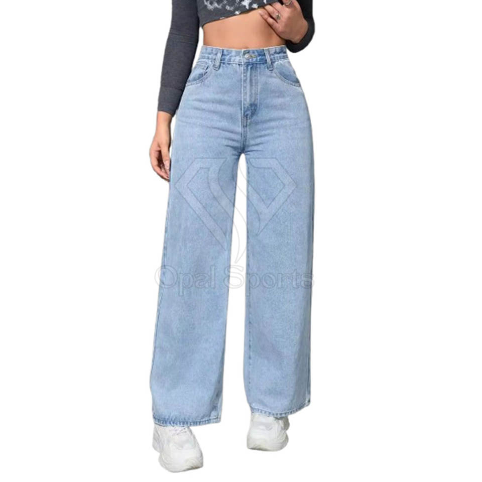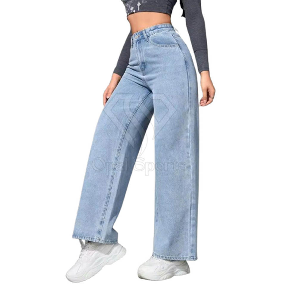 กางเกงยีนส์ทรงกว้างสำหรับผู้หญิงที่มีซิปลอยและดีไซน์กระเป๋าแบบกำหนดเองเพื่อความสบายในชีวิตประจำวันของผู้หญิงกางเกงยีนส์กว้าง