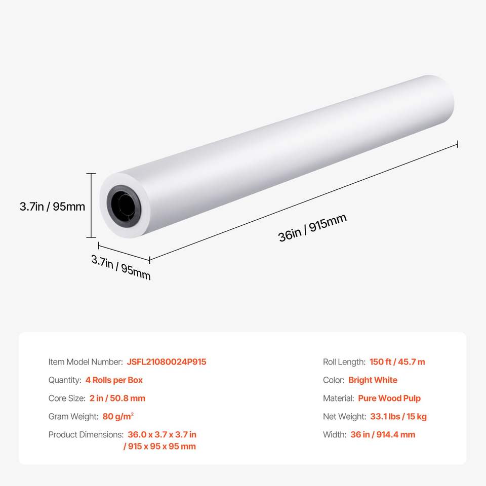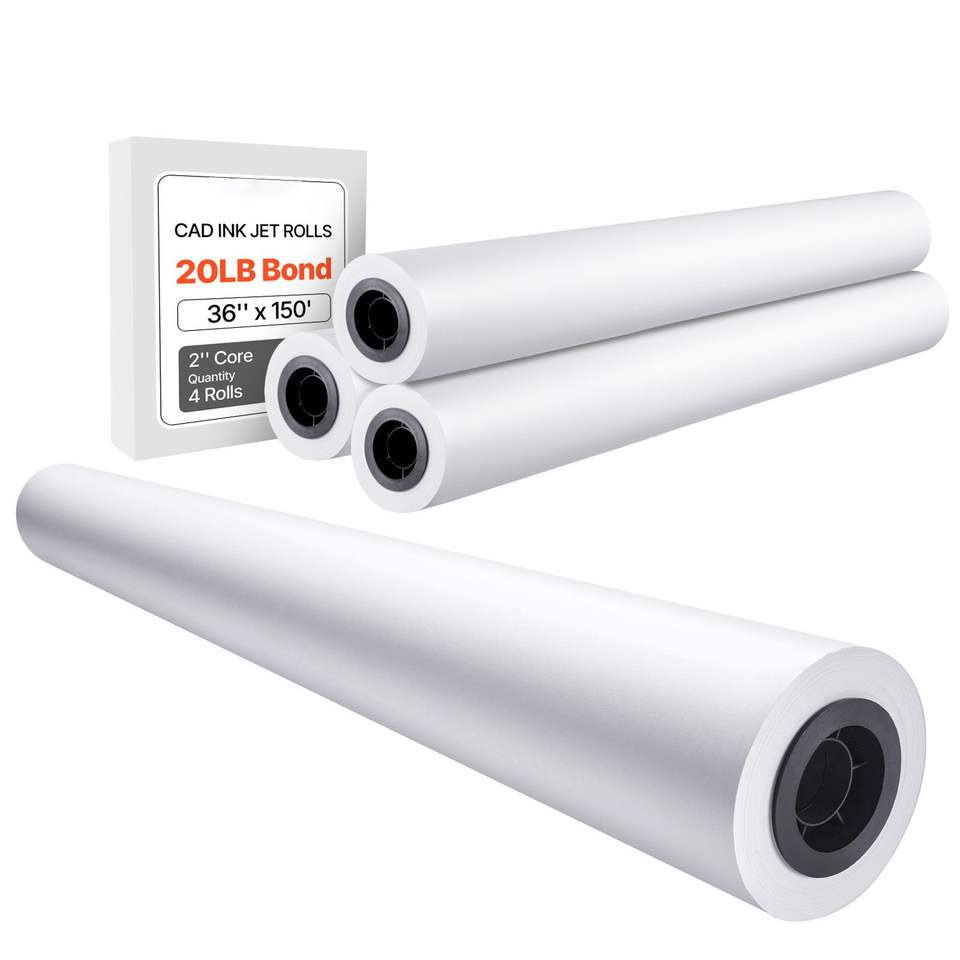 กระดาษพล็อตเตอร์ CAD Bond แบบม้วน ขนาดกว้าง 36 นิ้ว x 150 ฟุต 4 ม้วน แกน 2 แกน น้ำหนัก 20 ปอนด์ สำหรับงานออกแบบ CAD รุ่น D0100HRI1JT