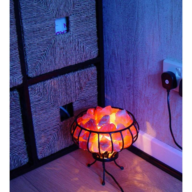 โคมไฟตะกร้าเหล็กทรงกว้างพร้อมชิ้นเกลือโคมไฟเกลือขนาดต่างๆ