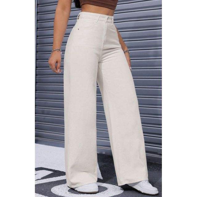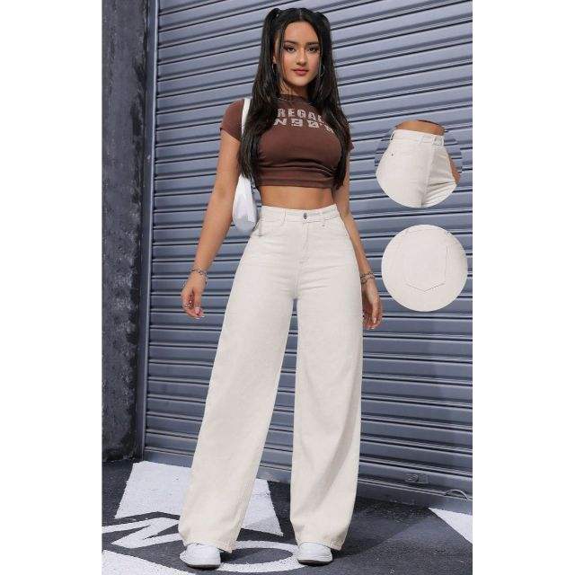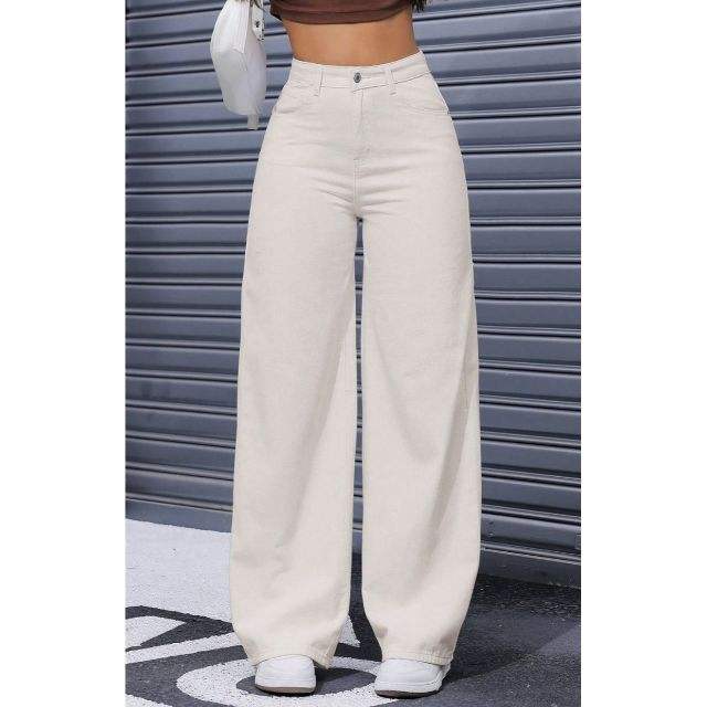 Wide Leg Cream Stretch Denim Jeans Plating Custom Design Wholesale Trendy Street Style Loose Fit Pant Size 26-40 OSCA