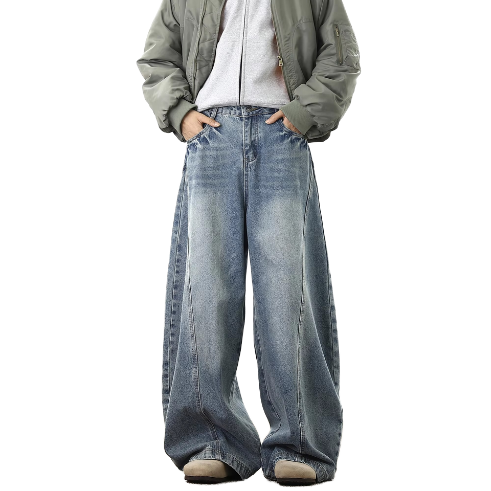 กางเกงยีนส์ขาตรงสำหรับผู้ชาย, กางเกงยีนส์มีกระดุมระบายอากาศแนวสตรีทแบบลำลองแฟชั่นผ้าฝ้าย100%